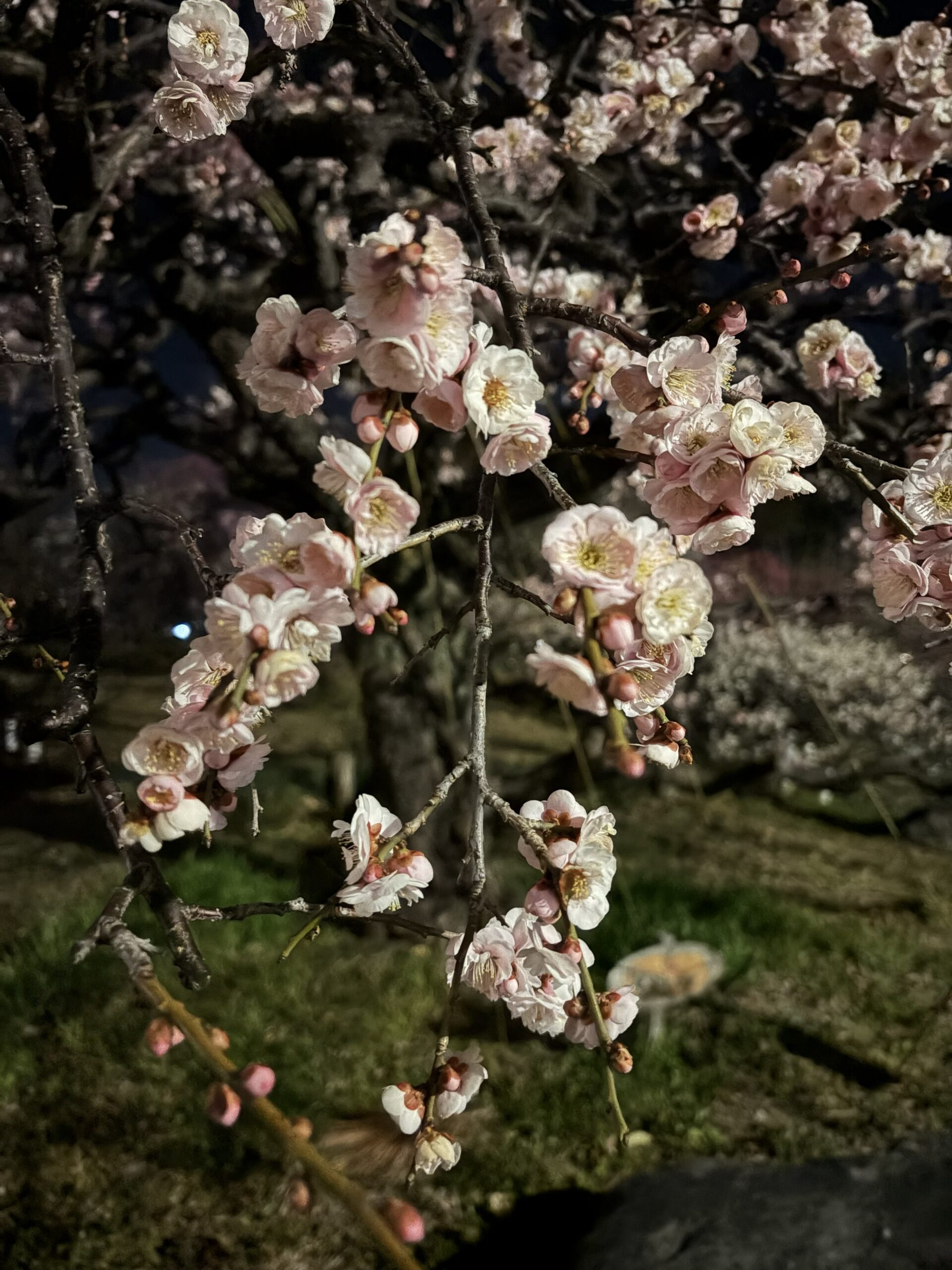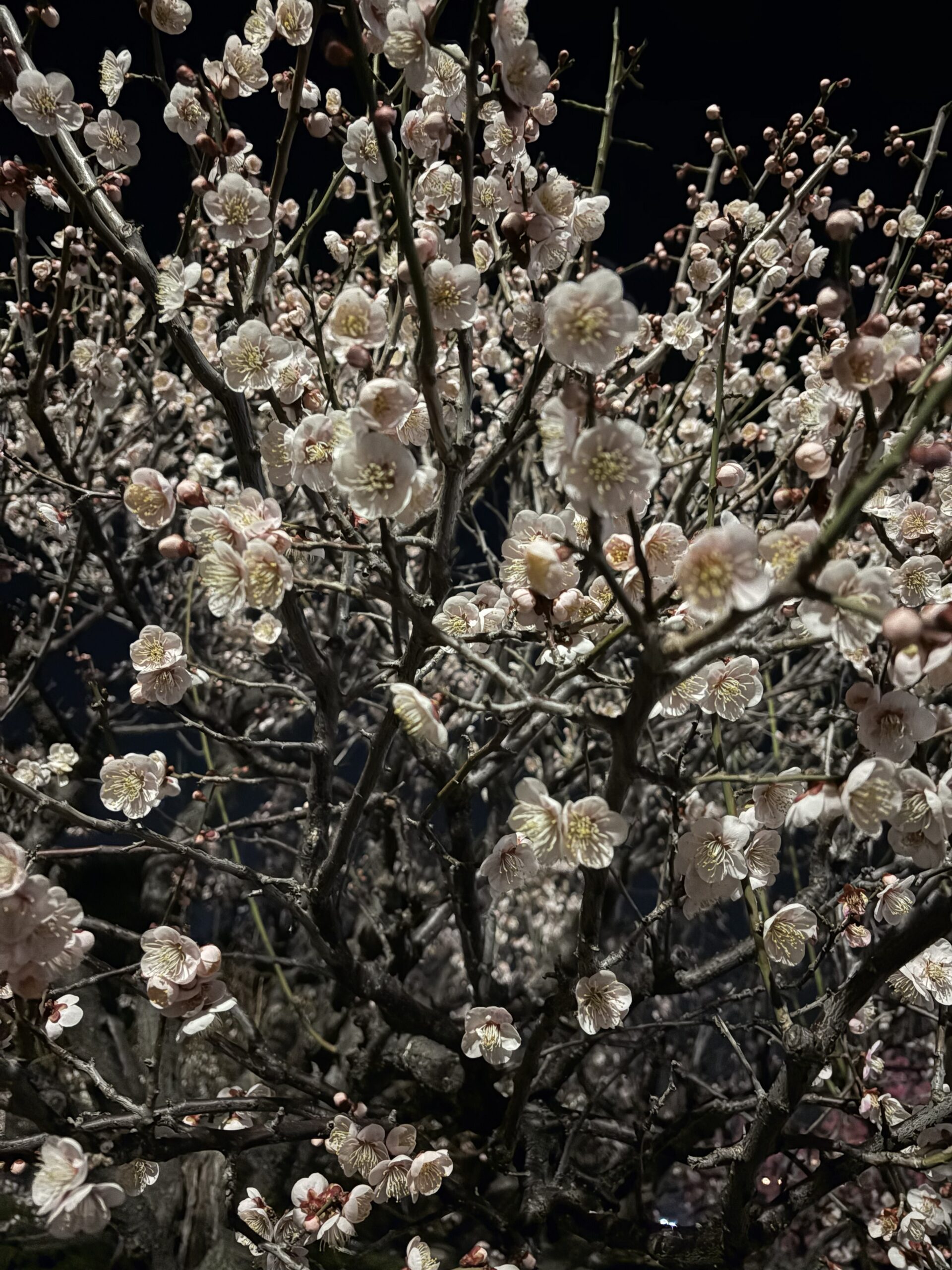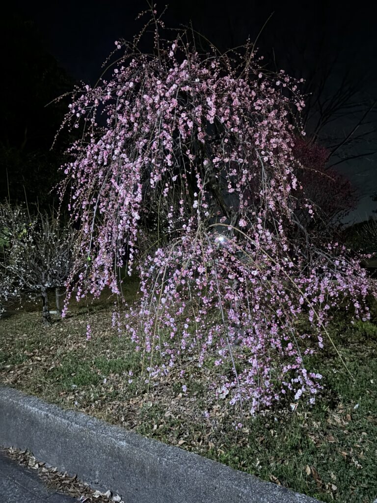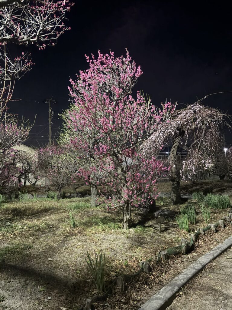 2026年2月20日の梅の状況です。夜は夜でなかなか乙なものです。