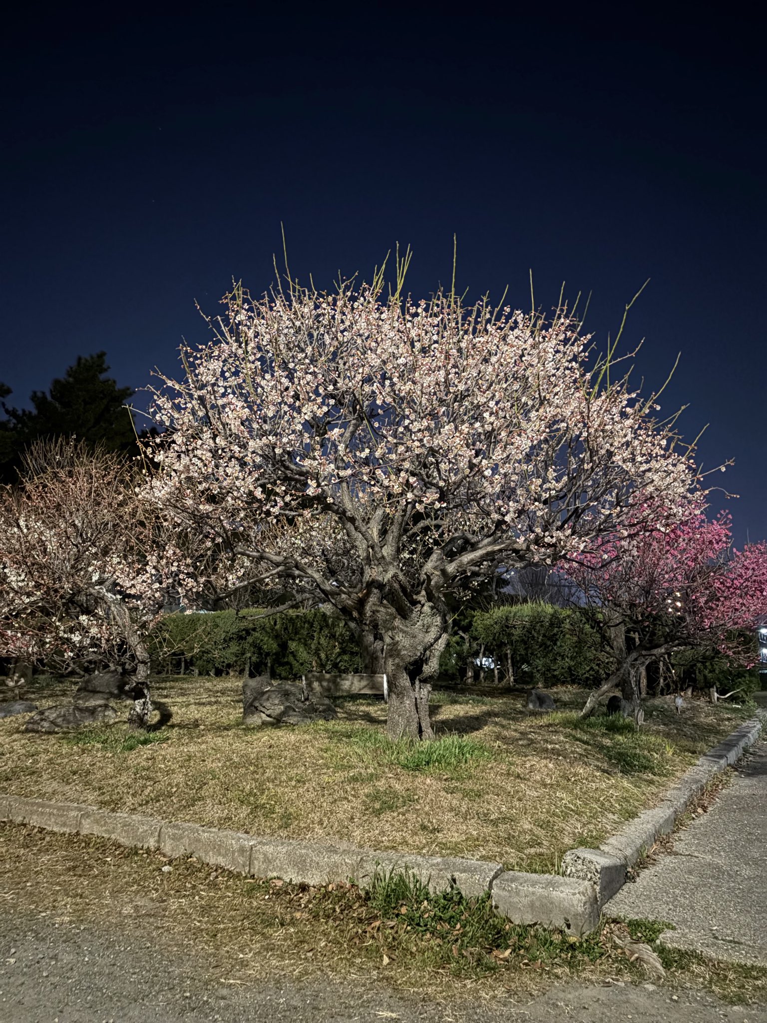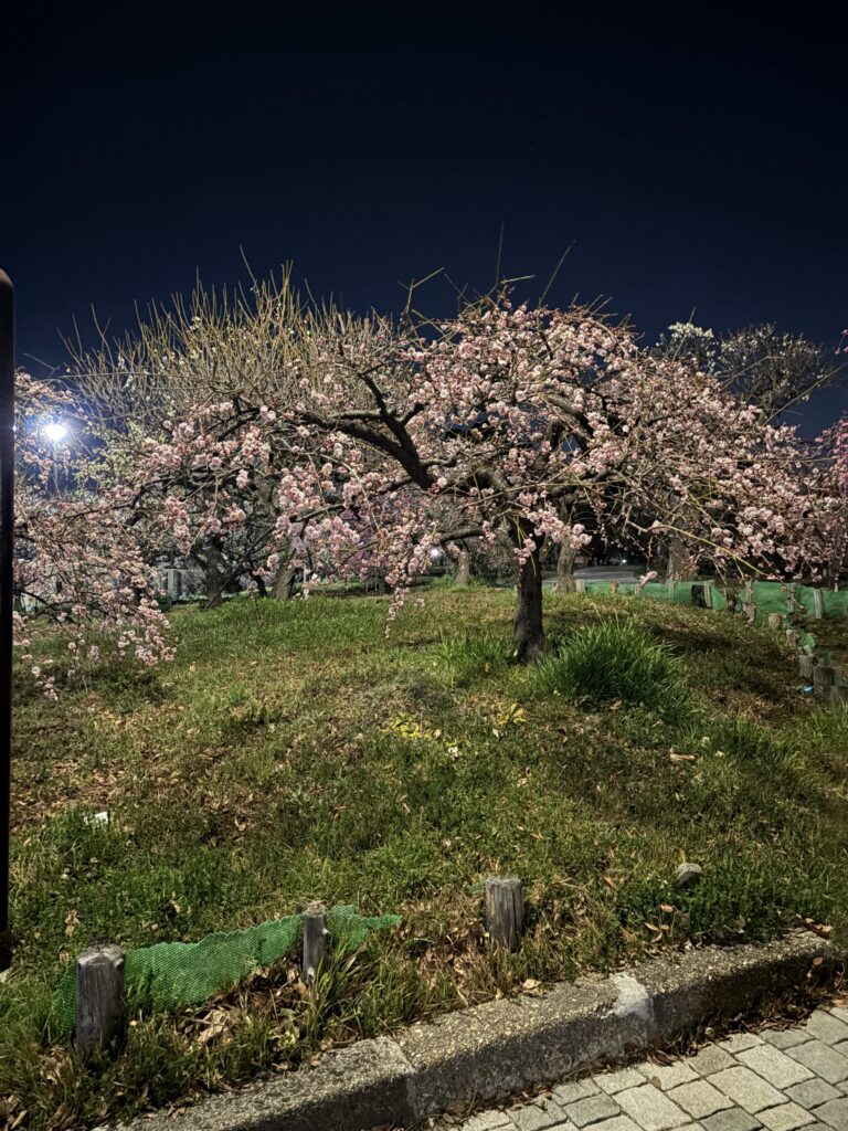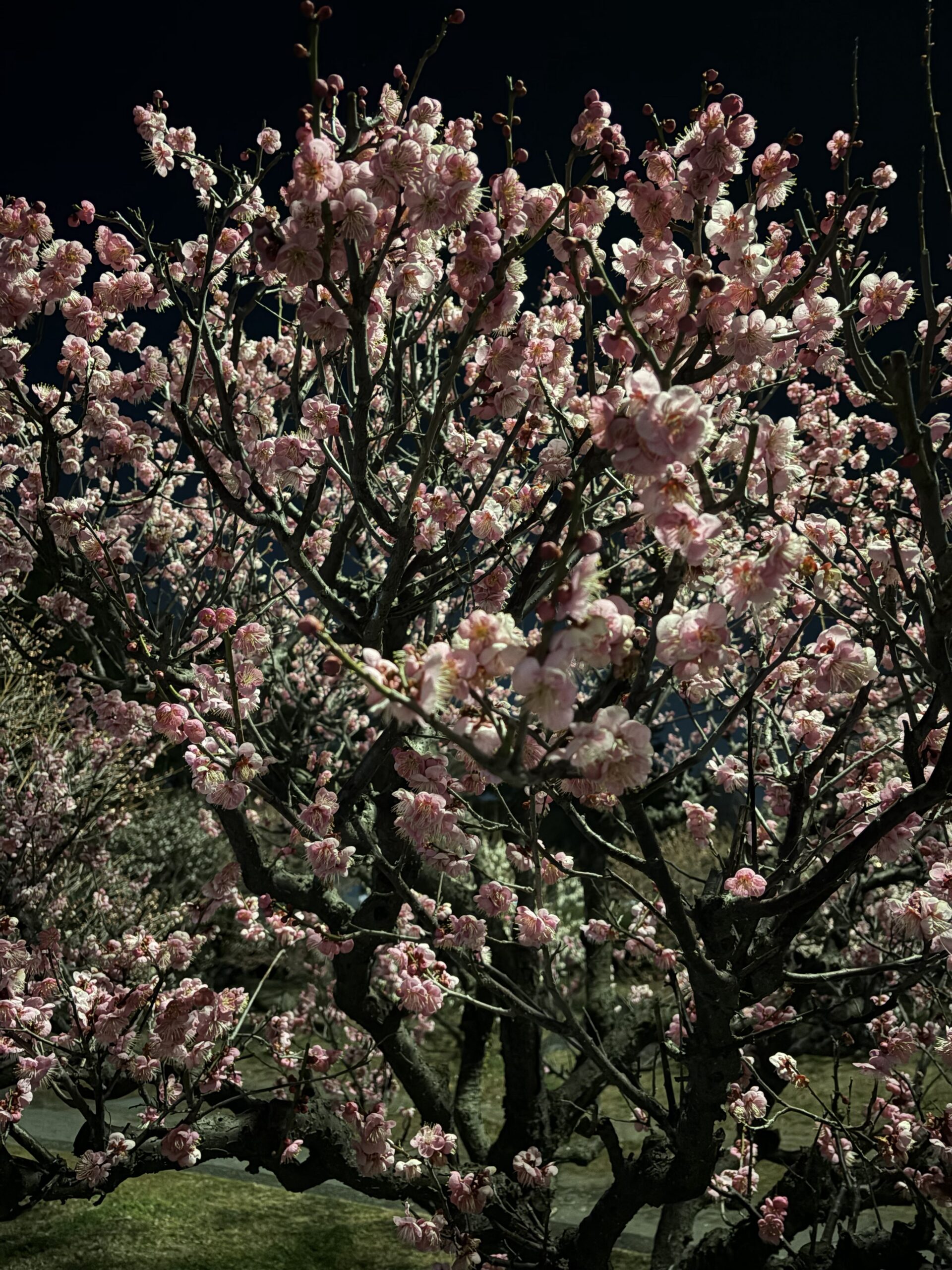 2026年2月20日の梅の状況です。夜は夜でなかなか乙なものです。
